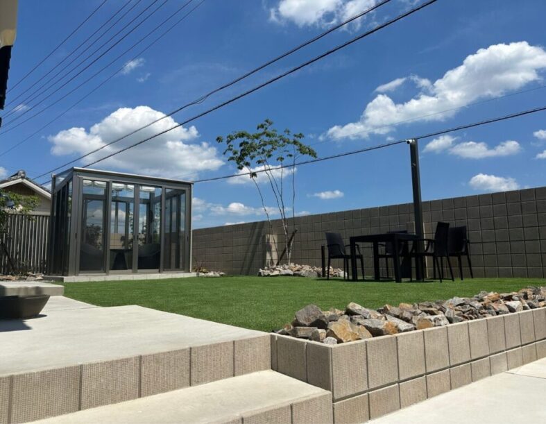 植栽も多くデザインに入れ、お洒落で機能性の高い素敵な庭になりました✨